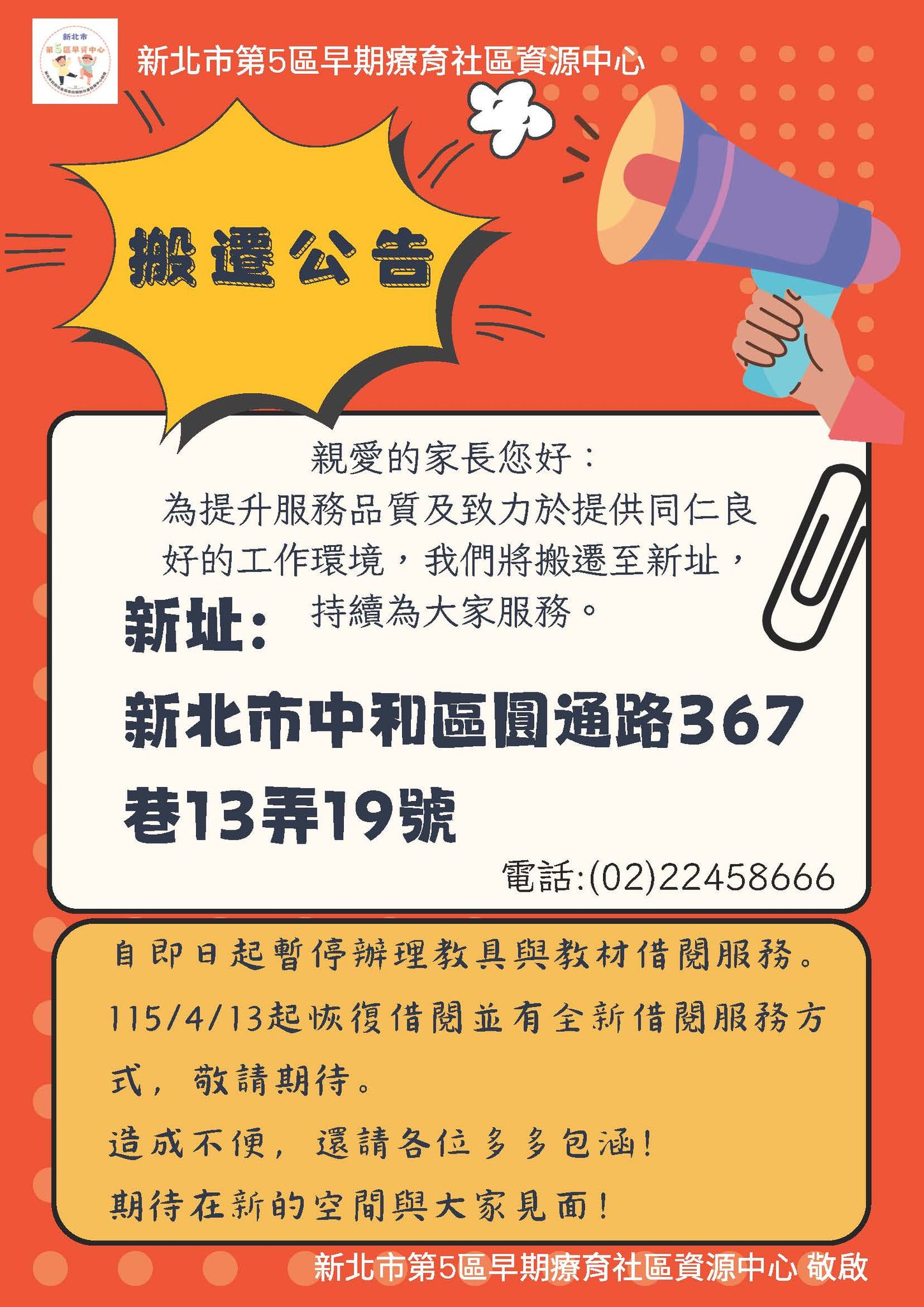 🎉🎉🎉 第5區早資中心要搬新家啦~~~ 🎉🎉🎉